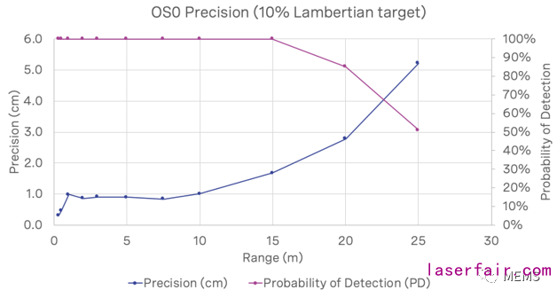 OS0精度實測 – 目標物體(ti) 反射率為(wei) 10%: