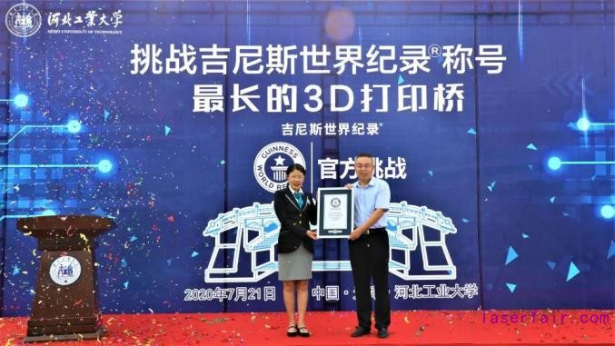 按照規則,吉尼斯認證官吳曉紅仔細查閱了橋梁的規劃方案、設計圖紙、施工建造過程資料、3D打印材料配製和用量等技術資料,聽取了第三方見證人的陳述意見,全程參與(yu) 了現場測量過程,確認流程規範、合理,並確認最終測量結果,為(wei) 馬國偉(wei) 教授頒發吉尼斯世界紀錄證書(shu) 。