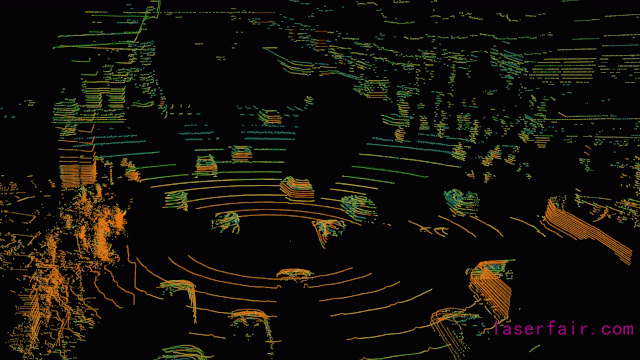 (鐳神C32線激光雷達(垂直分辨率1°)路測點雲(yun) 效果)