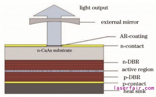 EP - VECSEL是VCSEL向OP - VECSEL發展的過渡產(chan) 物,其研究主要集中在最初的近紅外波段(850~1550 nm),同時可以基於(yu) 腔內(nei) 倍頻有效地在可見光區域產(chan) 生激光輻射,易於(yu) 設計為(wei) 具有多個(ge) 激光元件的二維陣列,大幅提高了輸出功率。因此,EP - VECSEL適合批量生產(chan) ,大大降低了製造成本。