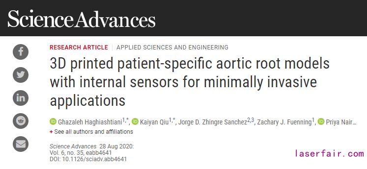 該研究於(yu) 8月28日發表在《科學進展》(Science Advances)雜誌,題為(wei) “3D printed patient-specific aortic root models with internal sensors for minimally invasive applications”。