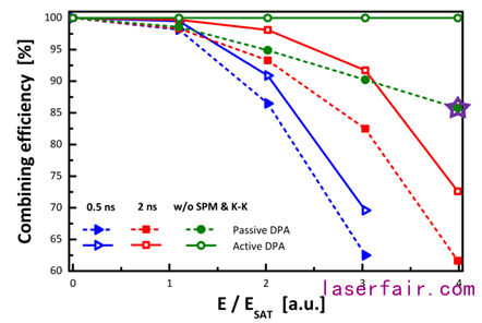 圖6 具有4個(ge) 子脈衝(chong) 的被動和主動DPA係統的合成效率與(yu) 增益飽和的關(guan) 係