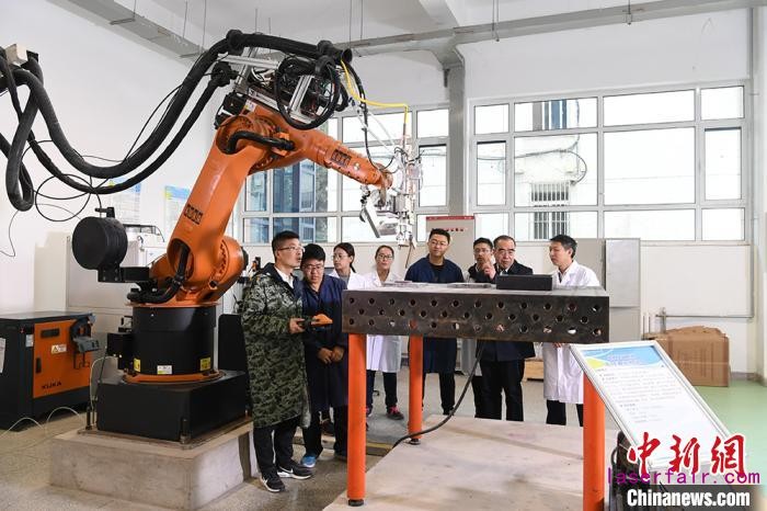 蘭(lan) 州理工大學師生進行激光焊接機器人實驗。(資料圖) 蘭(lan) 州理工大學供圖