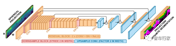 基於(yu) 這個(ge) 數據集,RangeNet 通過一個(ge) 並不複雜的 DNN 結構展示了令人著迷的性能和速度。圖 8 示出了 RangeNet 的結構和示例結果。隨著越來越多的標注數據集,我們(men) 有充分的理由期待基於(yu) LiDAR 的語義(yi) 分割將有更好的性能。
