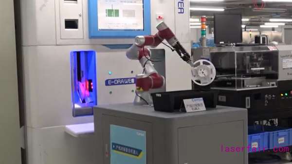 “在鋰電池企業(ye) 生產(chan) 後道包裝車間內(nei) ,一眼望去幾乎看不到工人的身影,隻有很多小助協作機器人不停歇地上下揮舞。在這裏,由小助協作機器人、終端等組合的智能係統包攬了鋰電池後道包裝工序,助力工廠智能生產(chan) 。”節卡機器人深圳分公司副總經理雷張輝先生表示。