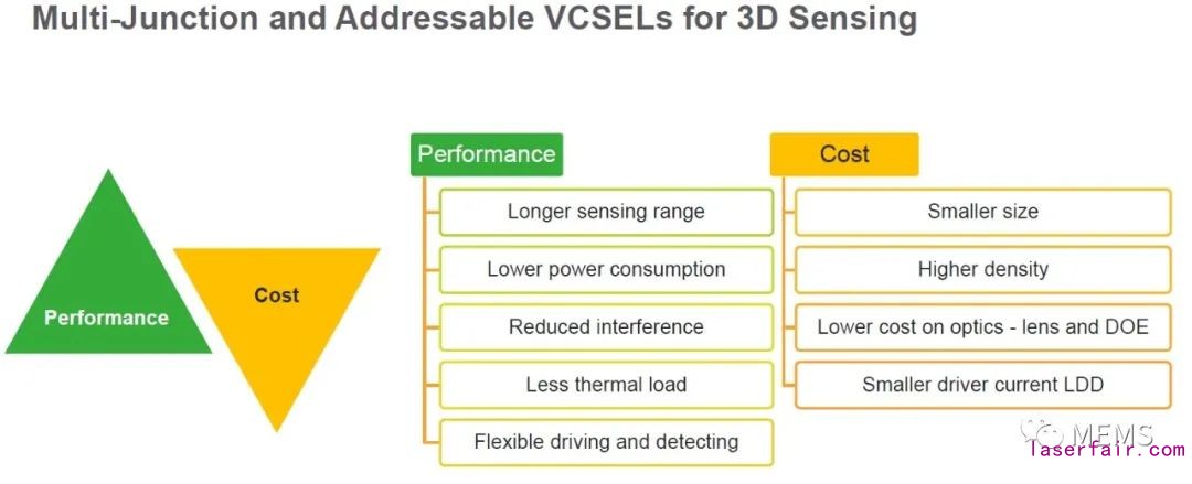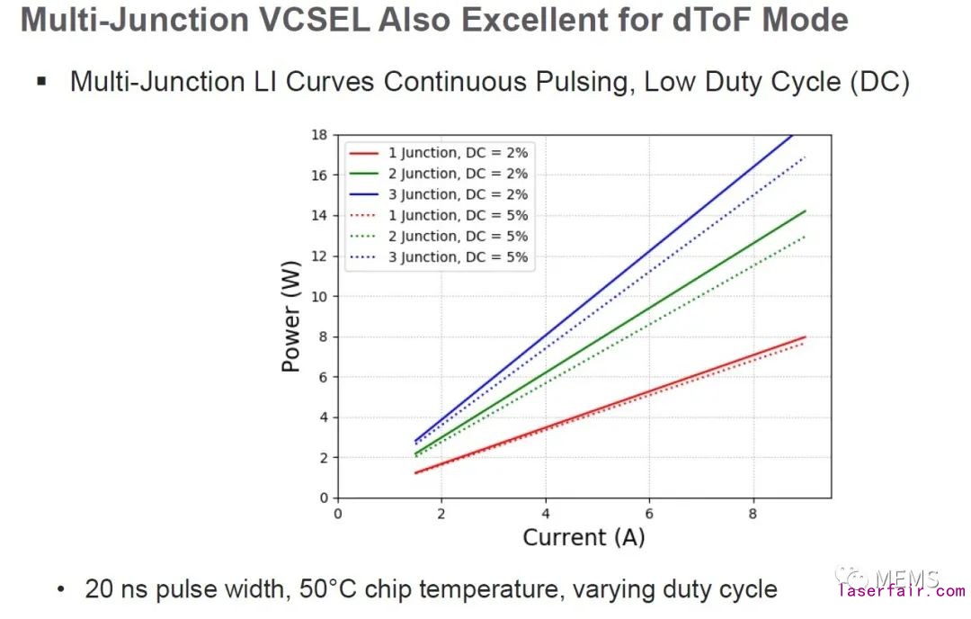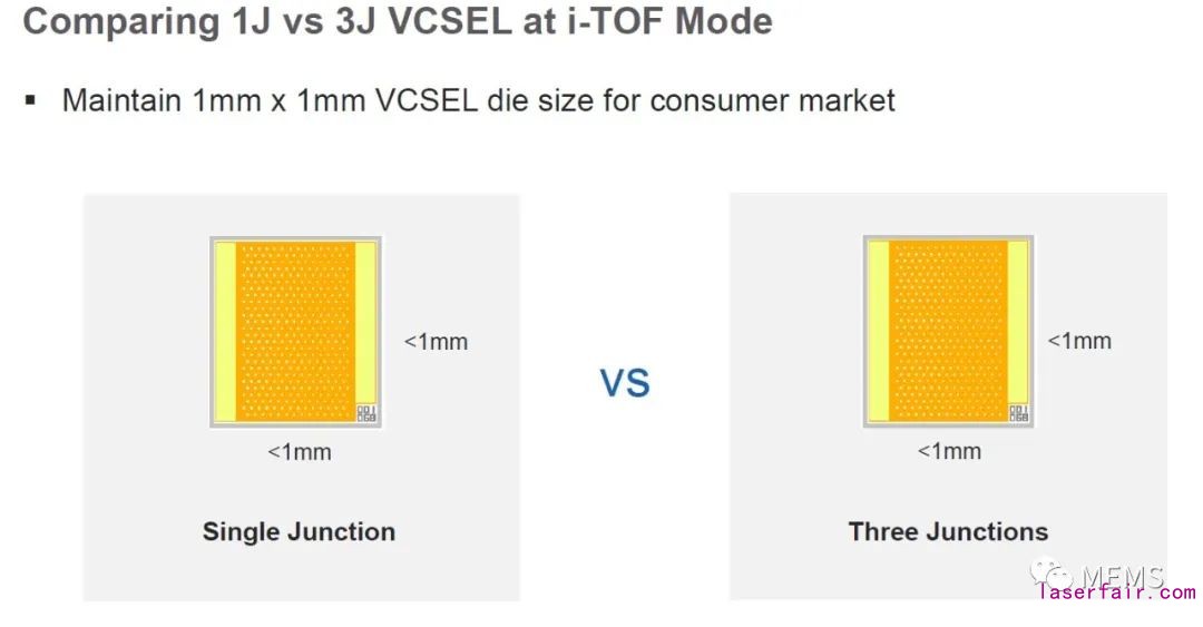 iToF模式工作的單結VCSEL和三結VCSEL:芯片麵積不變,單位功率密度大幅提升