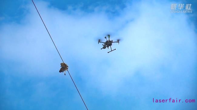 本次巡檢任務中,公司新配置的電網異物激光遠程清除裝置發揮了作用。現場作業(ye) 人員經過簡單調試後,利用無人機飛抵異物發射激光。短短10多分鍾,懸掛在線路上的異物就被燒得支離破碎,掉落地麵。