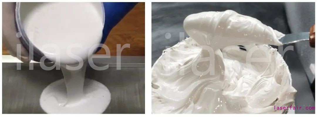 低粘度陶瓷材料(左圖) 和高粘度陶瓷材料(右圖)對比