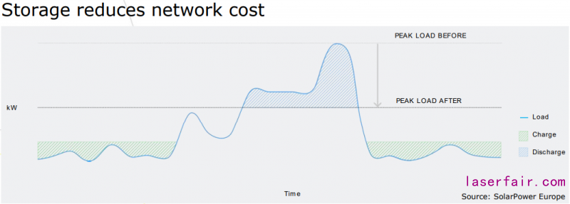 其次,儲(chu) 能係統減輕了電網需求峰值和發電量峰值的負擔,避免了由於(yu) 用電量提升而進行的電網升級費用(圖二所示)。另外,對於(yu) 偏遠地區的場景,光伏+儲(chu) 能可以24小時獨立運作,變成一個(ge) “小型電網”,從(cong) 而避免大規模的電網鋪設工程。更進一步來說,這與(yu) 人類未來暢想的能源形式不謀而合:家庭用電將不再依托於(yu) 大型電網,而由獨立的小型電網支持,符合能源去中心化的概念。