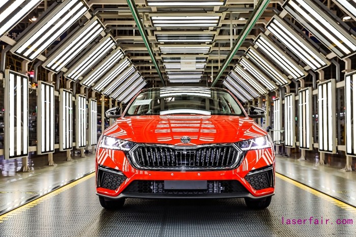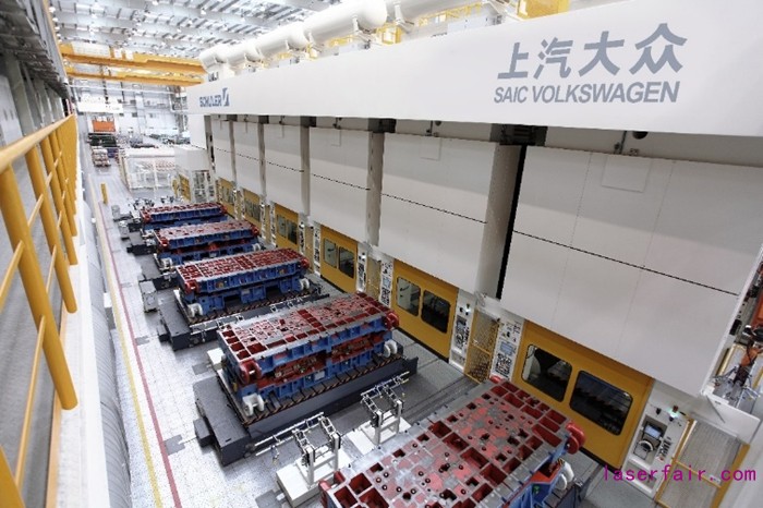 全新明銳PRO從(cong) 設計到成型,看似簡單,實則工藝複雜。得益於(yu) 德國舒勒6工序9100噸高速衝(chong) 壓線,將精致流晶設計美學照進現實。整線由6台壓機組成,完成拉延、衝(chong) 孔、修邊以及整形等工序的生產(chan) ,最高衝(chong) 壓次數可達18次/分鍾,是目前上汽大眾(zhong) 最先進、自動化程度最高的衝(chong) 壓車間;高噸位壓機保證衝(chong) 壓零件精度誤差在0.2mm,領先行業(ye) 內(nei) 0.5-1mm的誤差。