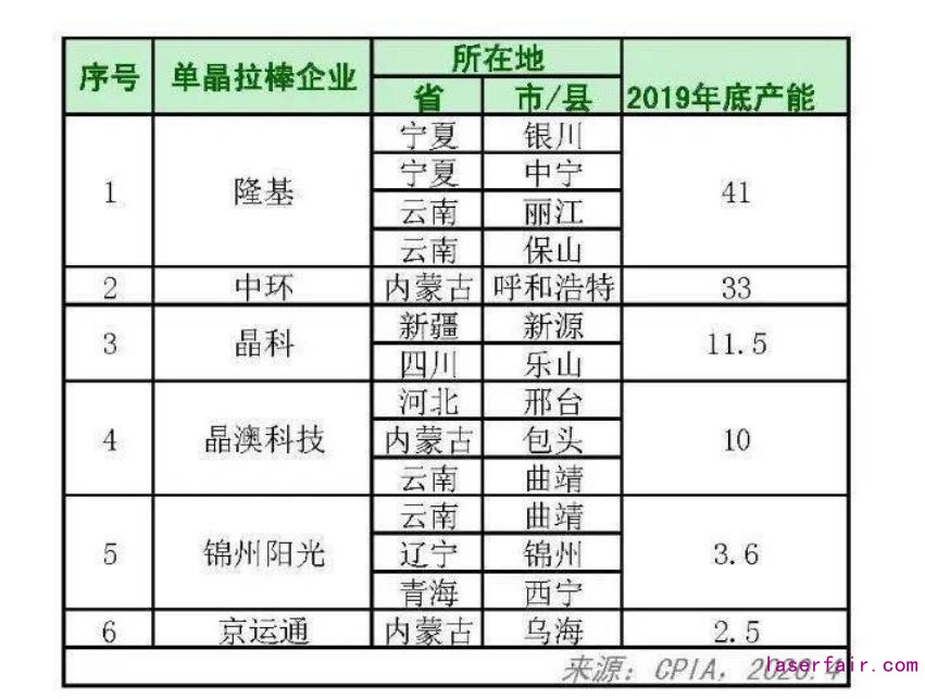 表1 單晶拉棒企業(ye) 產(chan) 能布局
