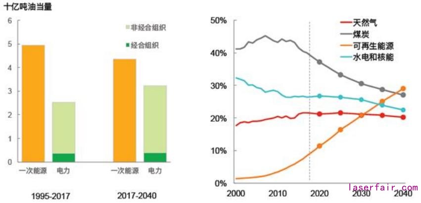 全球能源需求總量在發展中經濟體(ti) 的拉動下將持續保持穩步增長,其中電力在能源供應側(ce) 和消費側(ce) 的增速表現出強勁的增長態勢。縱觀全球,新能源與(yu) 可再生能源在許多國家能源和電力消費中的比重持續擴大(見圖7),電力化、清潔化已經成為(wei) 全球能源發展的趨勢。例如,美國加州規定到2045年,終端消費者使用的零售電力和政府采購電力必須100%來自可再生能源和零碳能源;印度計劃2022年實現可再生能源裝機量175GW;德國2018年可再生能源電力占比已提升至40%以上,並首超煤電占比,計劃到2050年將其再提升至80%以上;西班牙規劃到2030年累計光伏裝機量達到77GW,太陽能將成為(wei) 該國最廉價(jia) 的電力來源;意大利發布2020-2030年的能源發展戰略,累計光伏裝機量上調至50GW。根據國際能源署(IEA)預測,2030年前後可再生能源將成為(wei) 全球最大的電力來源,全球在2015年至2040年間的電力投資中,將有近60%歸屬可再生能源領域,以光伏、風電和水電為(wei) 代表的可再生能源將是未來電力裝機增量的主力。