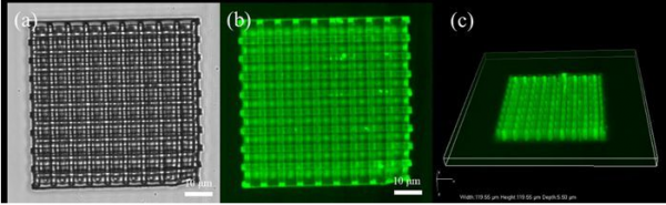 研究團隊利用該光敏體(ti) 係實現了結構保真度和力學性能良好的仿生3D水凝膠細胞支架結構的3D打印,研究了細胞在支架上的生長行為(wei) ,熒光探針標記和顯微成像研究證實了該類引發劑具有良好的生物相容性,這為(wei) 水凝膠材料在組織工程領域中的應用提供了科學依據。