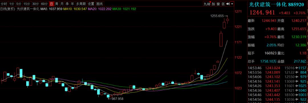 圍護領域森特股份龍頭地位穩固,在隆基股份正式簽署戰略合作協議,攜手進軍(jun) 光伏建築一體(ti) 化(BIPV)市場後,森特股份一度三個(ge) 月暴漲300%,從(cong) 上周二至今,連續收獲了五個(ge) 漲停板。