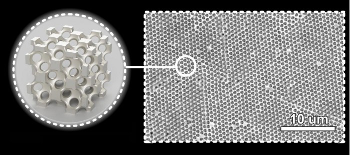 他們(men) 的材料有用特性和名稱來自於(yu) 其自然對應物一個(ge) 關(guan) 鍵結構特征:多孔性。作為(wei) 一種納米級鎳支柱晶格,金屬木充滿了有規律的細胞大小孔隙,在不犧牲材料強度的情況下,從(cong) 根本上降低了其密度。