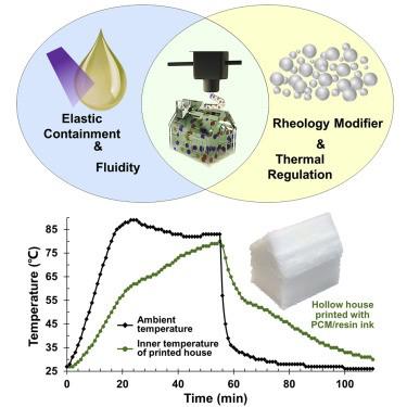 作為(wei) 演示,研究團隊打印並固化了一個(ge) 小型空心房屋模型。當模型被置於(yu) 烤箱中時,中空的內(nei) 部較外部環境溫度低了 40% 。此外經過 200 次熔化 / 凝固循環,也幾乎沒有出現相變材料的泄露。