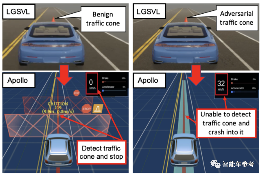 另外,在對百度Apollo自動駕駛的測試中,出現了100%識別失敗的情況。