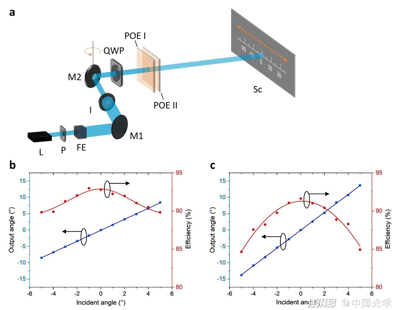 非機械式波束轉向器在無人駕駛汽車的激光雷達、近眼顯示的眼動追蹤、顯微鏡、光鑷以及高精度三維打印技術中有著廣泛的應用。在這些應用中,輕巧、緊湊、高效率、高精度和(或)大角度的波束轉向器是長期以來夢寐以求的。但是目前最成熟的基於(yu) 光相位陣列的激光波束轉向技術隻能在很小角度範圍內(nei) 提供準連續的、高效的波束轉向。因此,設計更先進的擁有上述特征的波束轉向器一直是該方向研究的熱點。