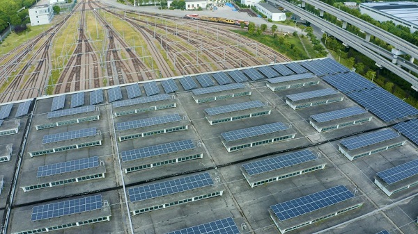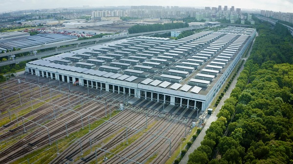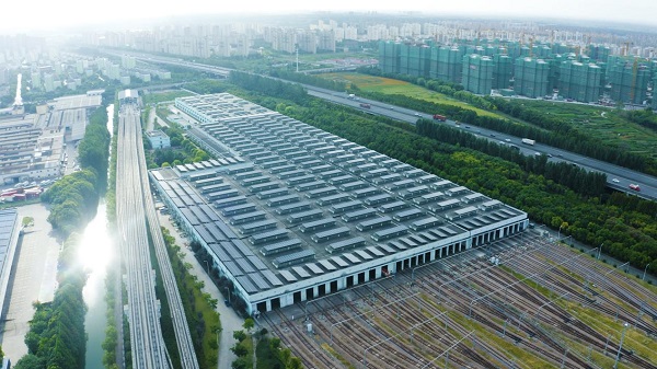 (隆基組件閃耀在車輛基地的屋頂)
