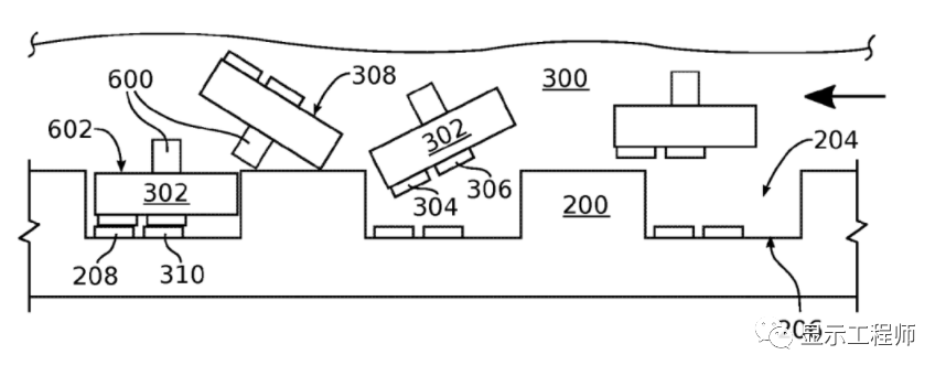 可以看出,在這個(ge) 技術方案中,eLux對MicroLED的形狀有特殊的設計,這樣可以保證在自組裝的過程中正麵朝上。