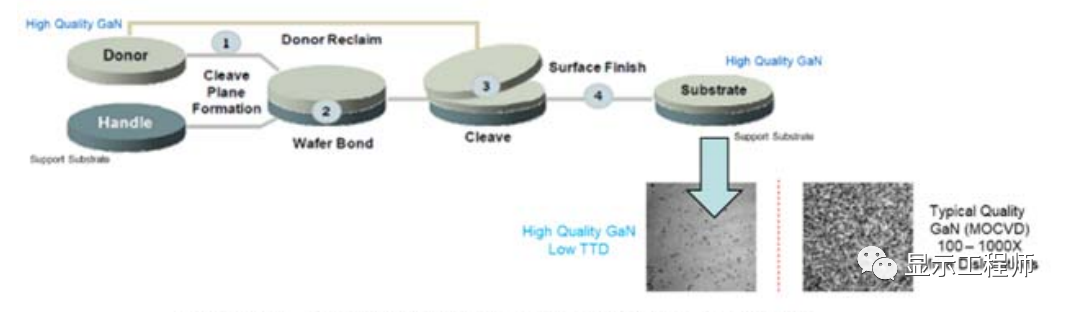 采用薄膜轉移的方式,可以得到高質量的GaN薄膜,這樣可以提升Micro LED器件的效率。