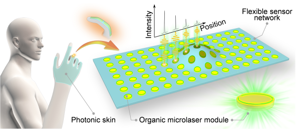 圖1 基於(yu) 有機微納激光陣列實現人造光子皮膚的概念示意圖