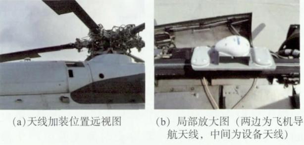 機載設備天線的安裝位置對數據精度的影響較大。試驗采用直升機平台,飛機有主螺旋槳和尾翼穩定螺旋槳,其中主螺旋槳旋轉時覆蓋整個(ge) 機身,尾翼部分不方便安裝天線,加之試驗用的GNSS天線屬於(yu) 臨(lin) 時性加裝,不允許對飛機機身進行改動,因此,經過討論分析,GNSS天線安裝在飛機自帶的兩(liang) 個(ge) 導航天線中間(見圖1),距主螺旋槳軸約2m。