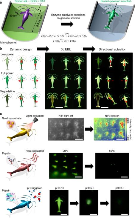 使用 3d EBL 製造的生物燃料驅動的酶輔助蜘蛛絲(si) 納米魚