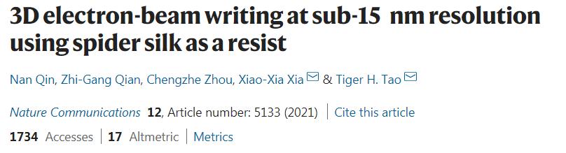 將重組蛛絲(si) 蛋白作為(wei) 抗蝕劑的 3D EBL。