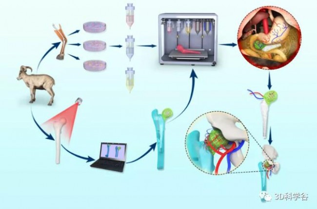 傳(chuan) 統關(guan) 節假體(ti) 可能在10年內(nei) 發生鬆動、斷裂和感染等,從(cong) 而導致假體(ti) 失效和翻修手術。“生物3D打印在創造具有生理結構功能並能自我修複的組織器官方麵,已經成為(wei) 了一個(ge) 極富有臨(lin) 床轉化前景的工具,” 王金武教授介紹說, “然而目前也存在很大的挑戰:除了高精度打印的要求外,還需製備優(you) 良特性的生物墨水以及構建生物活性微環境。”