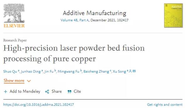 通常, 粉末床增材製造工藝包括粉末床激光熔化 (L-PBF) 和電子束熔化 (EB-PBF)。由於(yu) 電子束熔化工藝沒有光反射引起的能量損失,通過該工藝增材製造的銅部件具有高密度和良好的性能,導電率超過100% IACS。