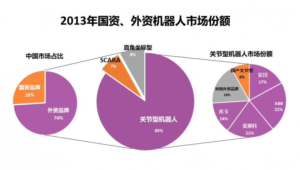 2 外資機器人企業(ye) ,特別是日企對中國工業(ye) 機器人市場的搶占態勢明確。2013年甚至被人稱為(wei) 日本工業(ye) 機器人轉戰中國生產(chan) “元年”: