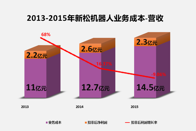 以中國機器人“長子”新鬆機器人為(wei) 例。2013年前後,新鬆的收入規模一直跟隨市場的繁榮正向發展,但每台機器的利潤越來越低,毛利率節節下滑。