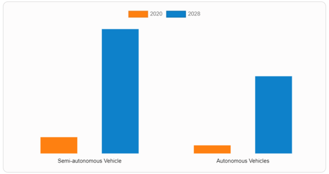 圖4:汽車激光雷達市場分為(wei) 半自動駕駛和全自動駕駛汽車應用。(圖片來源:Allied Market Research)