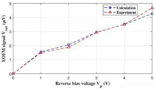 A的工作區域。此外,研究團隊依托自主研發的電光探針測試裝備,探究器件電光信號的產(chan) 生機製並提出一個(ge) 理論模型,可精確計算器件內(nei) 部節點的電壓信息(圖5),模型計算結果和試驗結果吻合較好。相關(guan) 研究成果發表在Electronics Letters和Applied Sciences上。