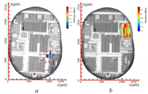 圖4.a、某器件發送電路定位結果,b、某器件接收電路定位結果
