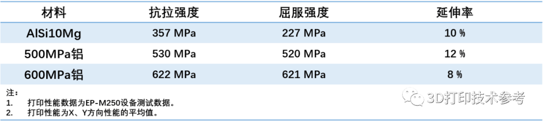 近日,3D打印技術參考獲悉國內(nei) 領先的鋁合金3D打印材料製造商--江西寶航新材料有限公司,已經成功研製了超高強度鋁合金HS5601。這是一種適用於(yu) SLM工藝的超高強度鋁合金粉末材料,其抗拉強度達到620Mpa,斷裂延伸率8%。該材料同樣為(wei) AlMg合金體(ti) 係,相較於(yu) AlMgScZr而言,其具有更高的強度,有望應用於(yu) 航空航天及國防軍(jun) 工領域對高性能材料的特別需要。下表是該材料與(yu) AlSi10Mg以及500MPa鋁的性能對比: