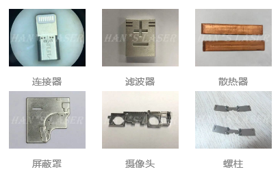 廣泛應用於(yu) 各類馬達、VCM、手機彈片、攝像頭、螺柱、屏蔽罩、熔斷器、散熱器、指紋模組、SD卡托、手機轉軸、手機天線、攝像頭支架、聽筒、揚聲器、手機功能鍵、連接器、接插件、料帶、線材、無線充、USB、充電頭等細分領域激光焊接和自動化集成應用。