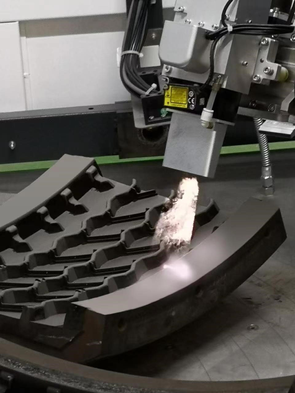 采用激光清洗輪胎模具無需耗材,對模具無任何損傷(shang) ,與(yu) 傳(chuan) 統砂洗、幹冰清洗相比,能耗低,碳排放少,噪音低。可以清洗全鋼、半鋼輪胎模具,尤其適合清洗無法砂洗的彈簧套模具。