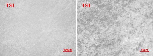 圖3為(wei) 不同工藝參數激光清洗得到的晶圓表麵顯微形貌,TS1參數激光清洗後,樣品表麵的玻璃層完全去除,露出底部漆層。TS2參數清洗一遍,得到的晶圓表麵有漆層殘留,TS2參數清洗兩(liang) 遍,晶圓表麵的漆層可以完全清除幹淨,露出晶圓基材。激光清洗後需要後續進一步測試,以判斷該晶圓表麵狀態是否滿足生產(chan) 要求。
