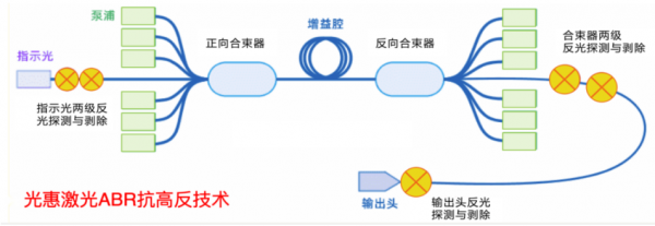 (Anti-Back-reflection)激光器內(nei) 部搭配反光探測與(yu) 剝除裝置可以在焊接過程中剝除99%的反射光,全方位保證激光器的穩定運行。