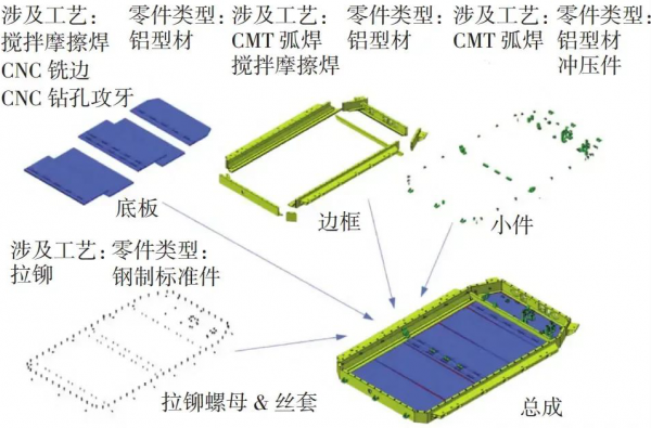 圖2 典型的汽車動力電池箱體(ti) 框架焊接過程