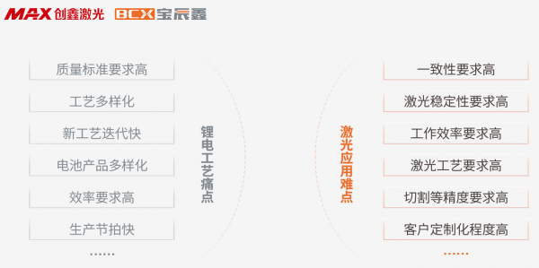 當前,全球新能源汽車產(chan) 業(ye) 已進入加速發展新階段,對動力電池技術創新、質量性能等提出更高的要求。接下來,動力電池行業(ye) 將邁入從(cong) “有沒有”到“好不好”的新階段。動力電池產(chan) 業(ye) 的前半程,已經可以滿足市場的基礎需求。動力電池產(chan) 業(ye) 的後半程,是引領市場需求,從(cong) 有到好,與(yu) 產(chan) 業(ye) 一起邁向高質量躍升發展的新階段。要在動力電池的生產(chan) 製造中實現高標準製造,無論是鋰電工藝本身還是激光應用落地都存在著許多亟需解決(jue) 的問題:動力電池的質量標準要求高,工藝多樣化,新工藝迭代快,電池產(chan) 品多樣化等,都給電池生產(chan) 帶來了諸多挑戰。在激光應用落地過程中,一致性、穩定性、效率、精度等要求高也是工藝難點。