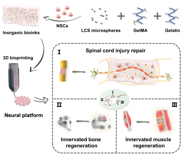 生物3D打印基於(yu) 無機材料/神經幹細胞的神經化構建體(ti) 促進脊髓、顱骨和肌肉損傷(shang) 等組織再生與(yu) 功能恢複