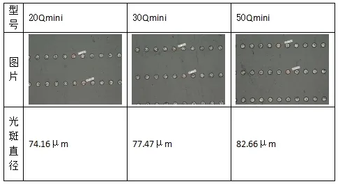 表1 20/30/50Qmini激光器脈衝(chong) 打點測量
