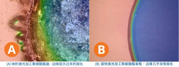 相比納秒激光器,超快激光器的脈寬更短,可以大大減少熱效應的影響,因此可實現產(chan) 量、精度與(yu) 質量之間的平衡。在醫療器械製造中,過多的熱量可能導致熔化、泡沫化、碳化甚至燃燒,導致對熱傳(chuan) 導敏感的高分子精密醫療器械無法達到安全係數標準。