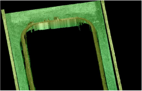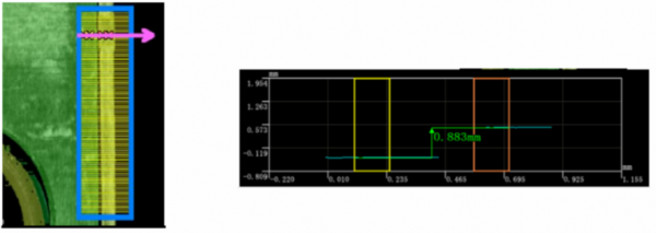 選定被測量區域,在區域內(nei) 每一段間隔抽取一個(ge) 輪廓,每個(ge) 輪廓都可以測量輪廓上殼口和頂蓋之間的高度差。在範圍內(nei) 可以測得每個(ge) 輪廓上殼體(ti) 到頂蓋之間的高度差。