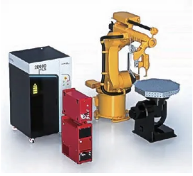 針對船舶製造過程中的平麵分段中船板的拚接焊,奔騰激光研發了高功率激光電弧複合焊接工藝,適用於(yu) 船舶拚接焊的小車式激光電弧複合焊接機、大型龍門激光電弧複合焊接機等。機器人激光電弧複合焊接機如圖1 所示。