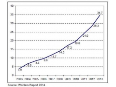 Wohlers Report 2014的報告稱,3D打印市場研究機構Wohlers發現,3D打印最終產(chan) 品利潤占到了整個(ge) 3D打印市場的34.7%,從(cong) 全球範圍的產(chan) 品和服務來說,自2003年以來,最終產(chan) 品的市場份額已經從(cong) 低於(yu) 4%上升...