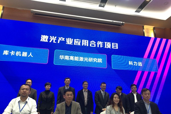 華南高能激光研究院與(yu) 機器人、混合動力等企業(ye) 簽署戰略合作協議。(方俊明攝)《粵港澳大灣區發展規劃綱要》提出,提升國家新型工...